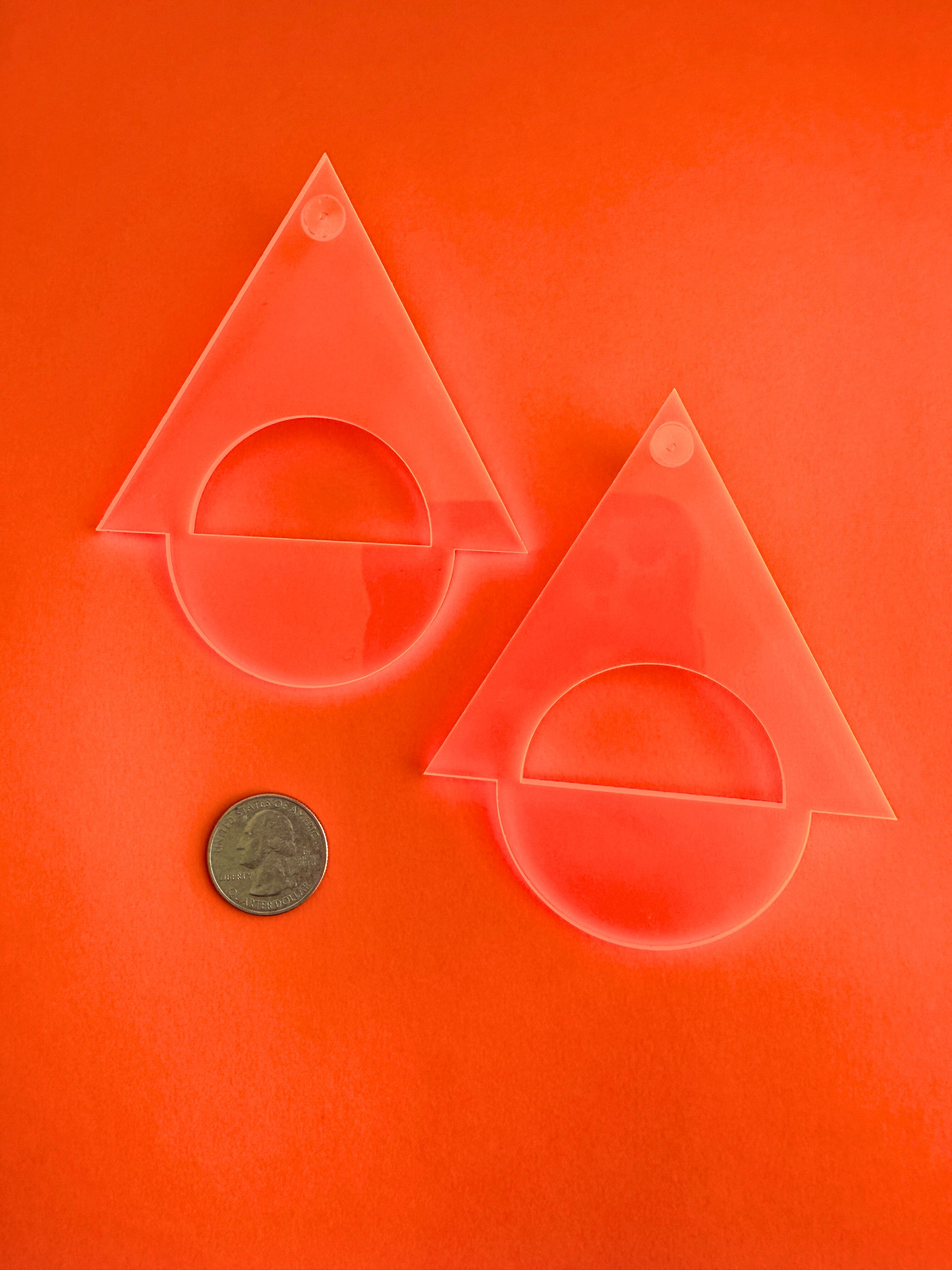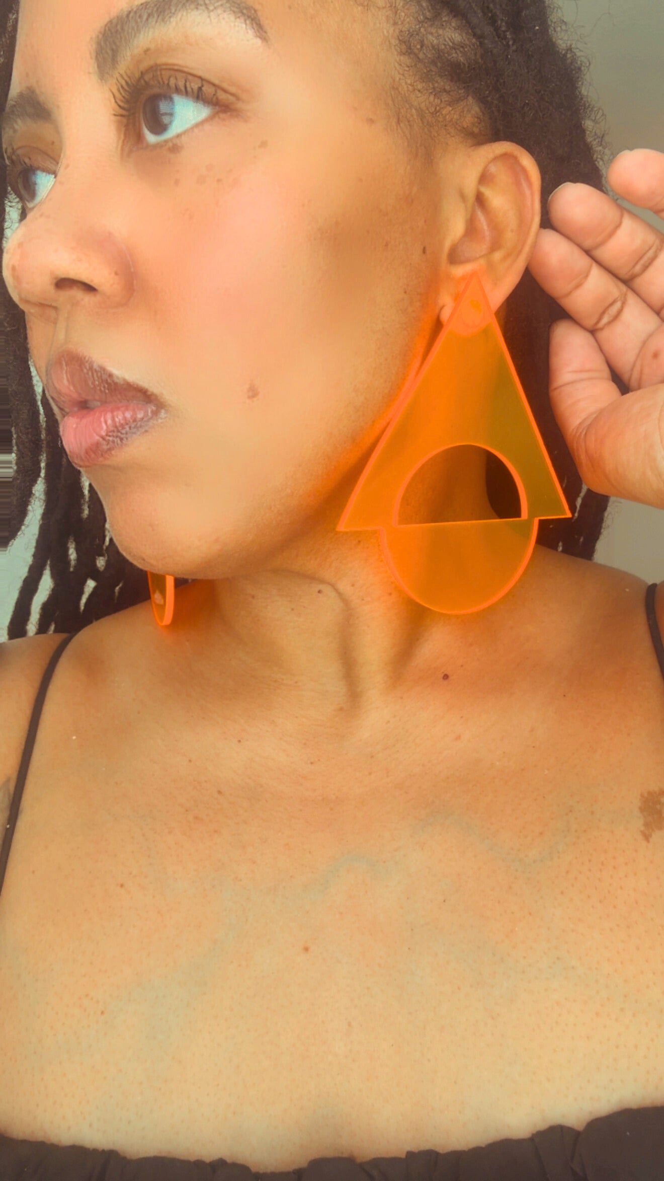 Made in transparent glossy orange acrylic, this design plays with light and structure, offering bold presence without heaviness.