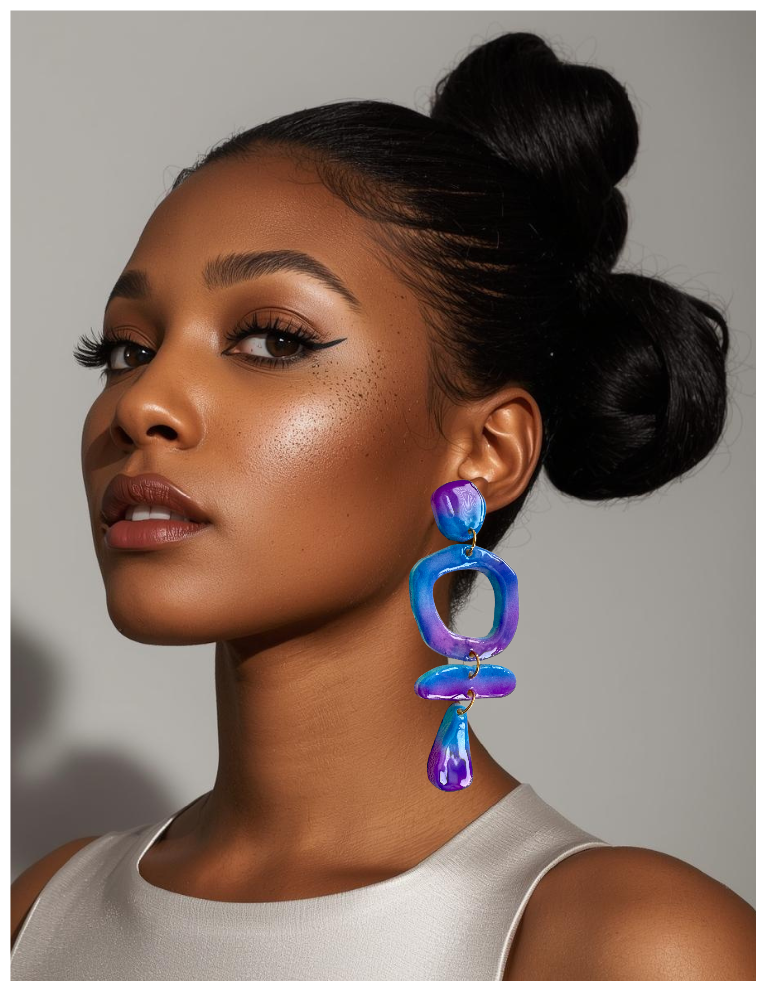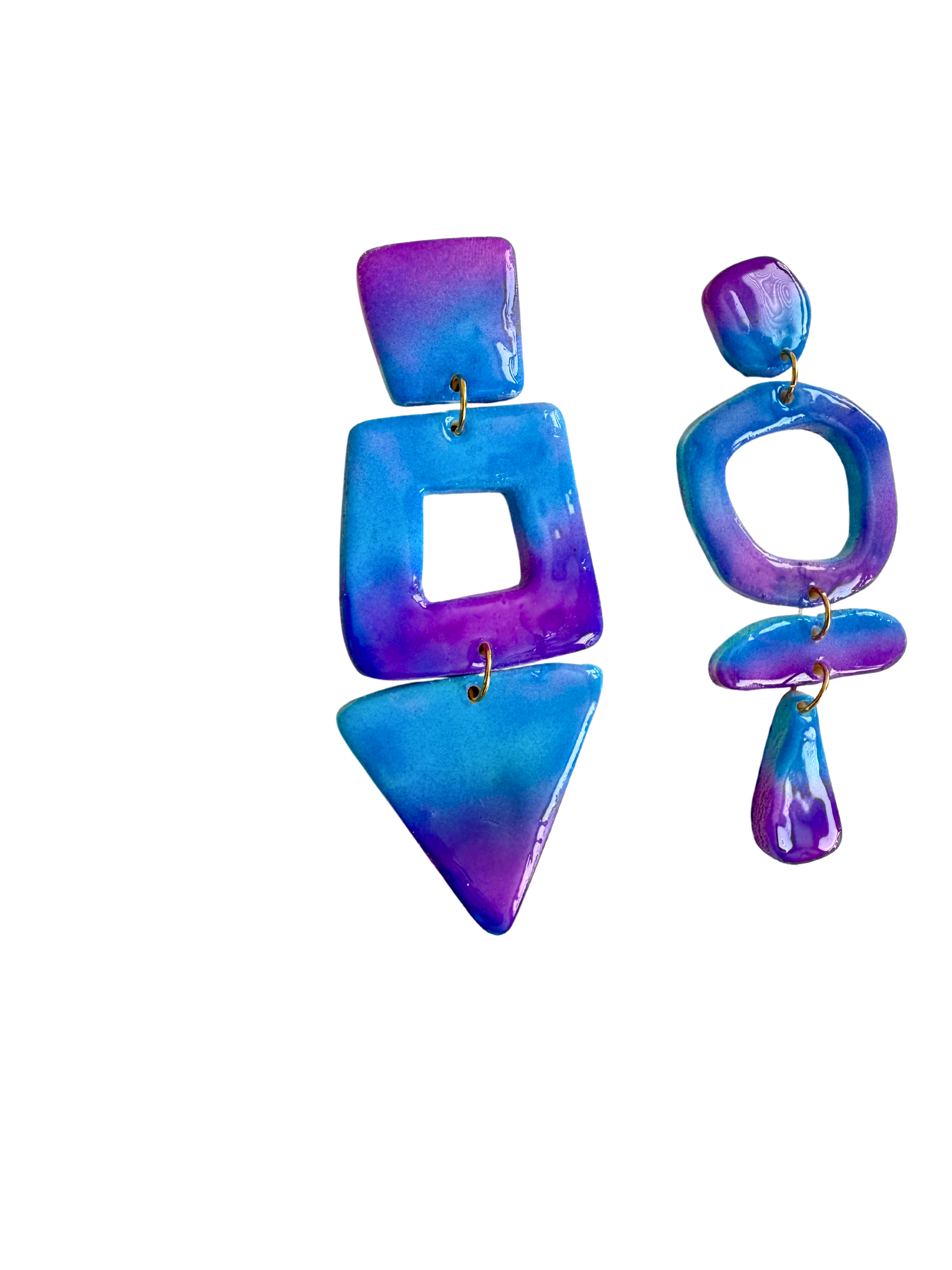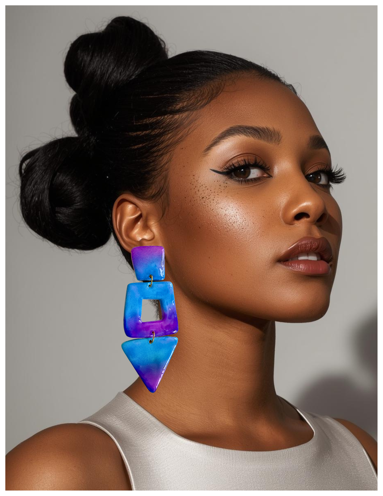 Stacked geometric shapes—solid, open, and angular—come together in a sculptural drop that feels intentional without being rigid.
