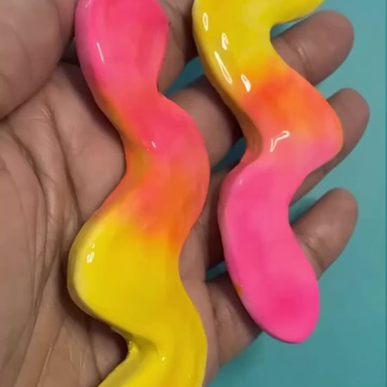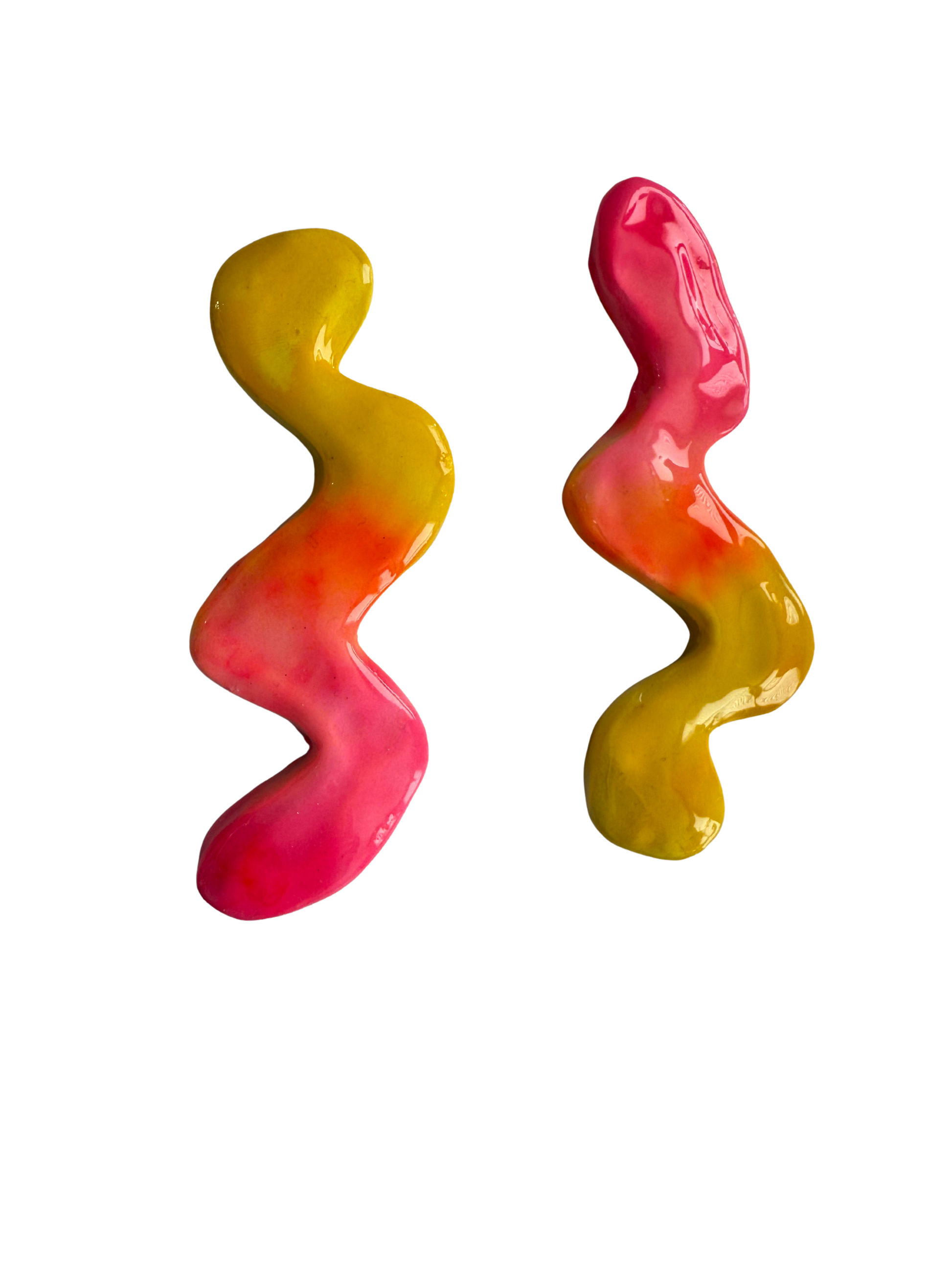 This piece is defined by soft curves and fluid form, shaped by hand without a fixed outcome. Color blends naturally through the clay, creating subtle variation and depth.