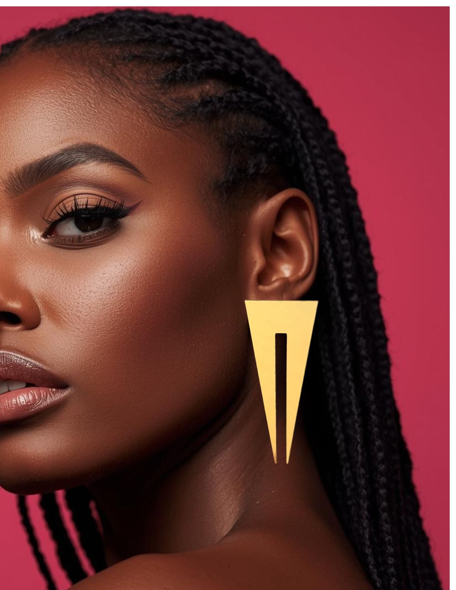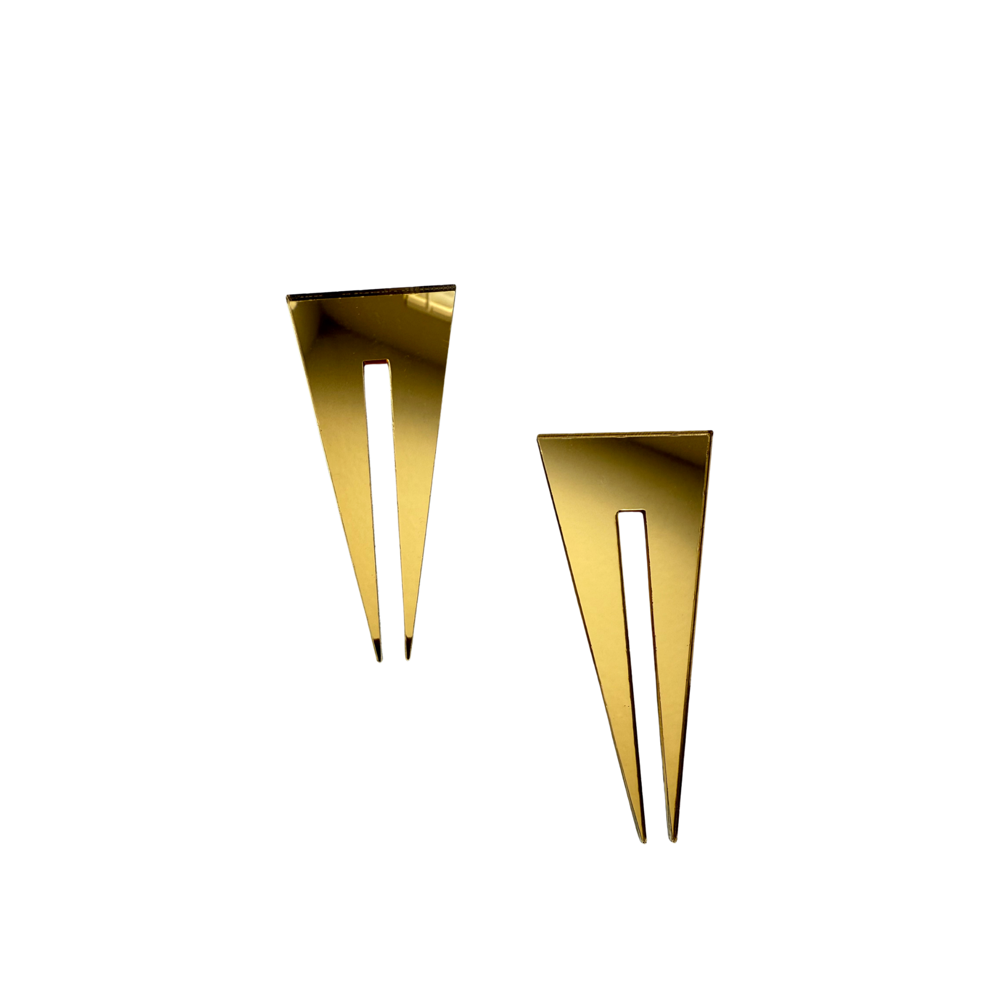 Crafted in metallic gold acrylic, this form draws the eye downward with intention, creating movement that feels both grounded and sharp.